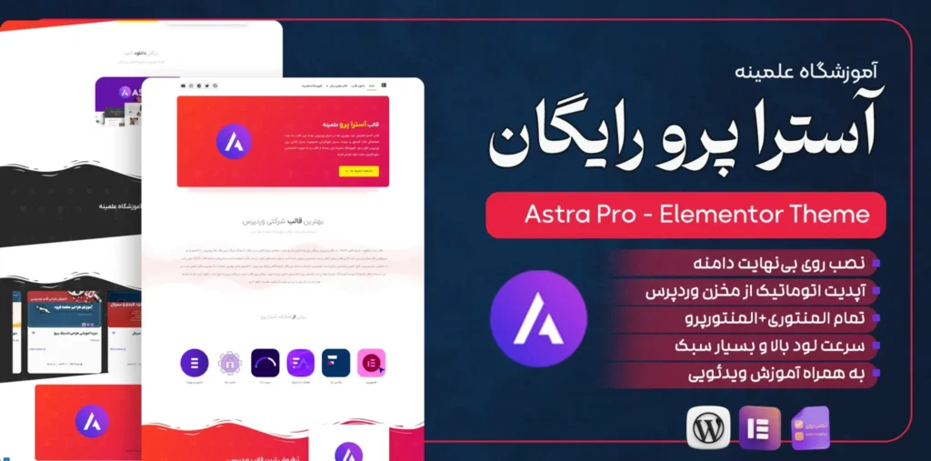 قالب چند منظوره – فروشگاهی Astra ، یک قالب وردپرس رایگان برای راه اندازی یک وبسایت حرفه‌ای فروشگاهی است. قالب آسترا از سازگار ترین قالب‌های وردپرس با المنتور و جز سریع‌ترین قالب‌های وردپرس است!! این قالب، بطور کامل ترجمه، راستچین و بومی شده است و برای سایت‌های ایرانی، براحتی قابل استفاده است.بخش‌های مختلف قالب Astra خیلی راحت با سفارشی ساز وردپرس، قابل تغییر و شخصی سازی است. همچنین صفحات مختلف این قالب فروشگاهی رایگان وردپرس ، با المنتور یعنی بهترین صفحه ساز وردپرس قابل تغییر است، در این نسخه از قالب آسترا که توسط آموزشگاه علمینه طراحی شده المنتور پرو با لایسنس اصلی نیز به صورت رایگان روی قالب نصب می‌باشد پس با خیال راحت دانلود کنید، البته نسخه های جدیدتر المنتور را نیز می توانید از سایت علمینه دانلود کنید.